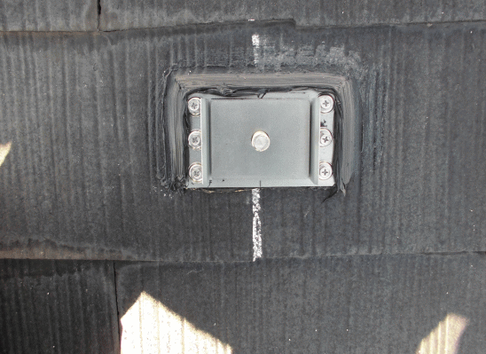 B固定したアンカー金具に雨漏れしないように変成シリコンで防水処置します。