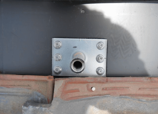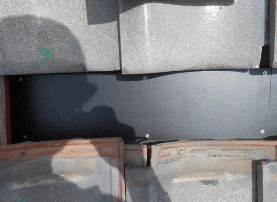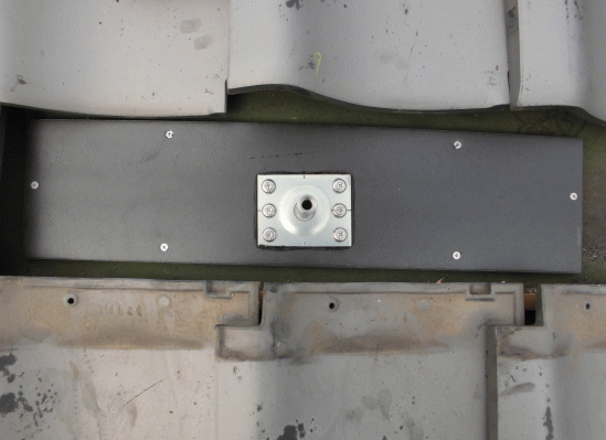 瓦を取り外し補強板を取付けます。 |