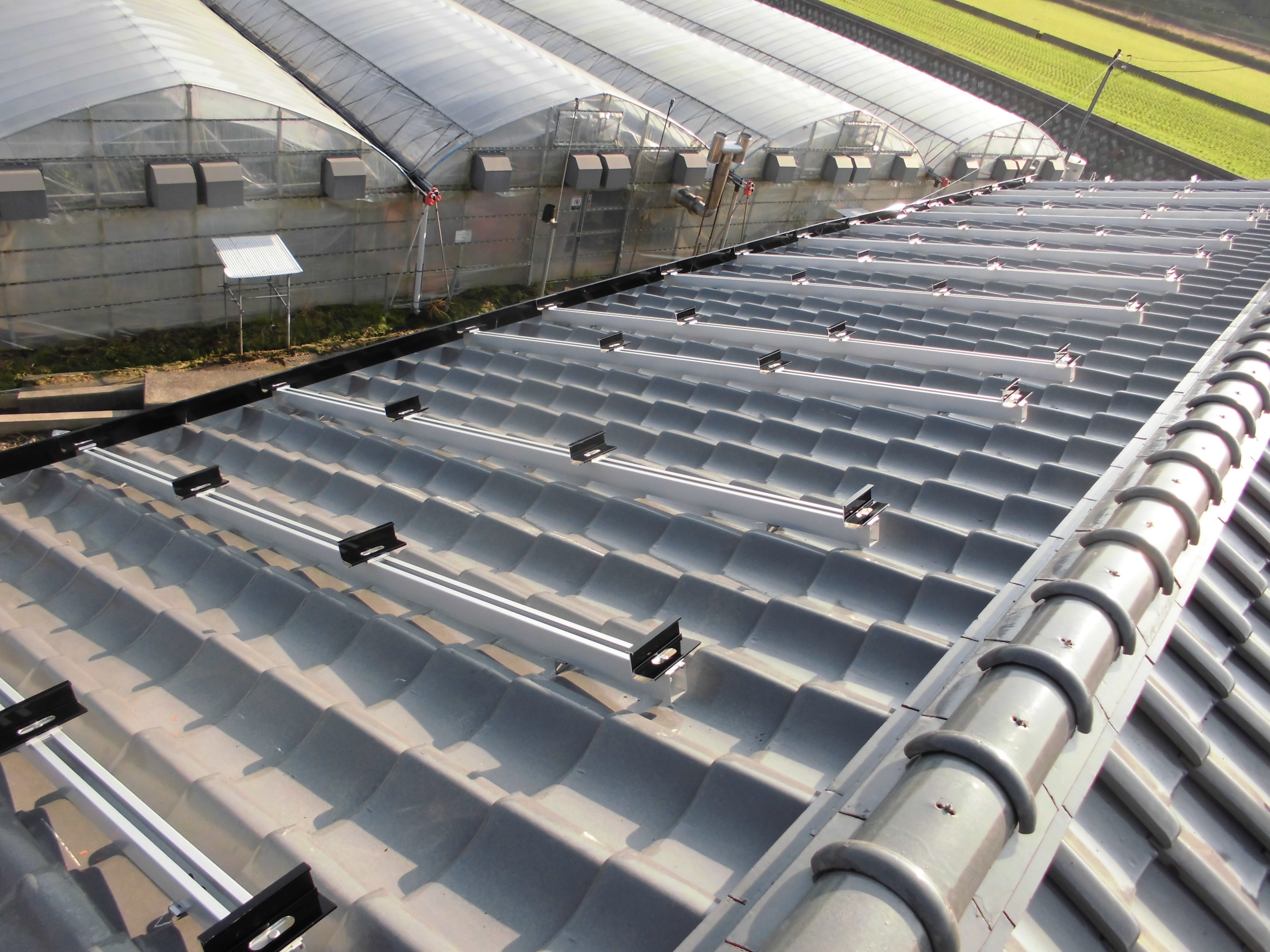 D瓦を元に戻し、支持金具の上にラックを取付けていきます。ラックの上にパネルを設置します。