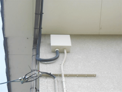 取付けます。これで太陽光パネルからのケーブルを一つにまとめて屋内へ引込みます。 |