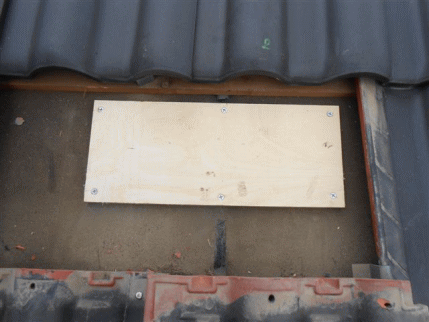 Aアンカー金具を固定する為、金具取付け位置の瓦を取り外し、補強板を取付けます。
