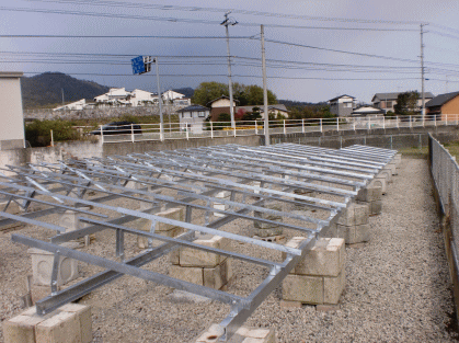 Aブロック基礎の上にラックを設置します。この上に太陽光パネルを設置します。
