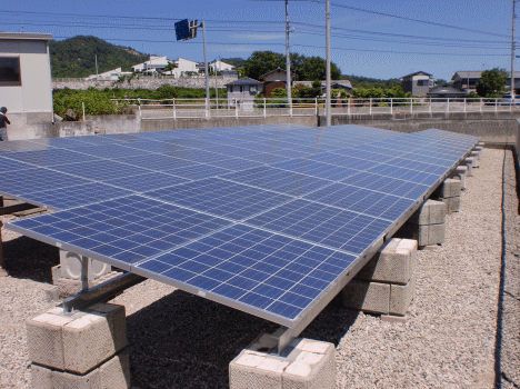 @施工前。京セラ 多結晶 24.32kwを設置します。ブロック基礎を設置します。