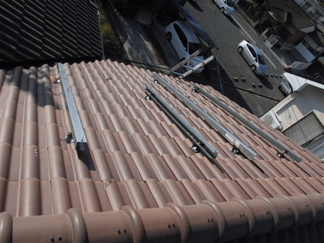 B取付けた金具の上から瓦を戻して