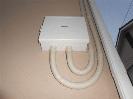 E屋根工事と同時進行で壁面に接続箱を