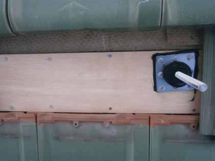 E屋根工事と同時進行で壁面に接続箱を取付けます。これで太陽光パネルからのケーブルを一つにまとめて屋内へ引込みます。 |