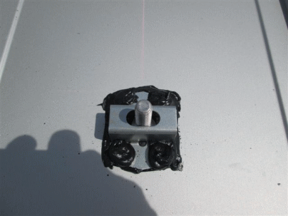 | B墨出しした箇所へスレート金具を固定します。雨漏れしないように周囲を変成シリコンで防水処置していきます。 |