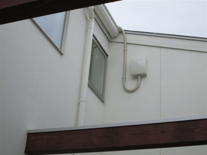 | F壁面に接続箱を取り付けます。これで太陽光パネルからのケーブルを一つにまとめて屋内へ引込みます。 |