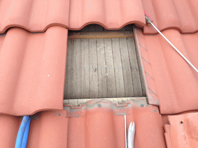 Bアンカー金具を固定するため、金具取り付け位置の瓦を取り外します。