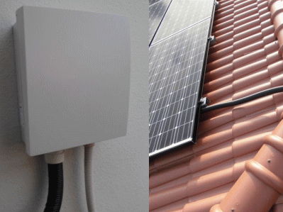 G屋根工事と同時進行で、壁面に接続箱を取り付けます。