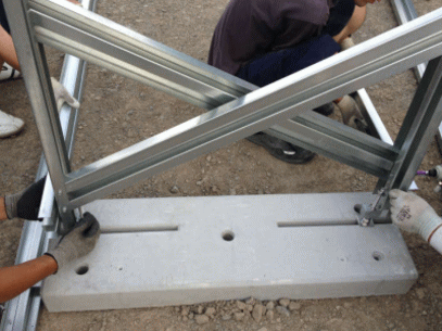 L架台が完成したら置き基礎を地面に