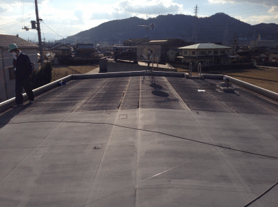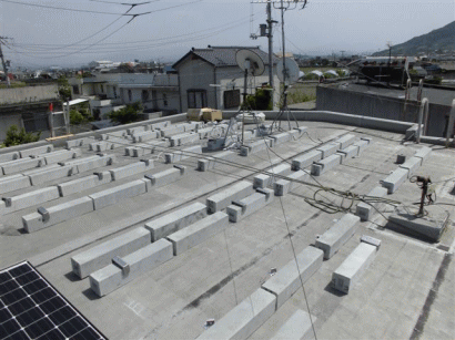 A陸屋根。ブロック基礎を置くため、滑り止めシート