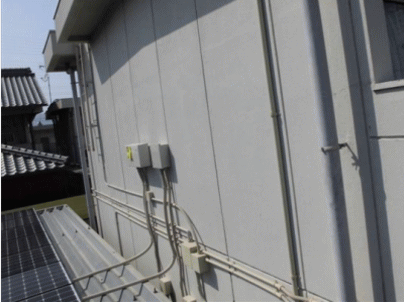 ケーブルを一つにまとめて屋内へ引き込みます。 |