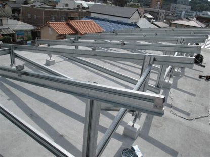 Aブロック基礎の上にラックを設置します。この上に太陽光パネルを設置します。