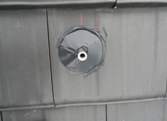 あらかじめ瓦に穴を空けておき瓦を戻し変成